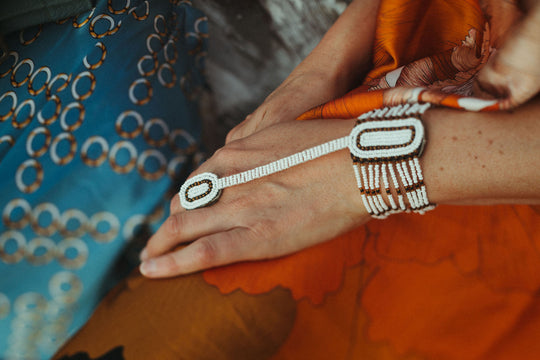 Made of meticulously crafted leather and bead work, these bracelets