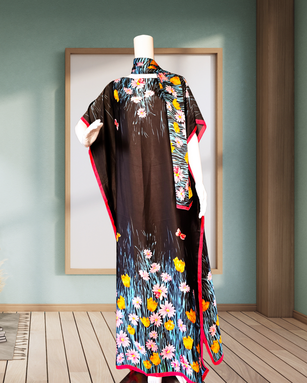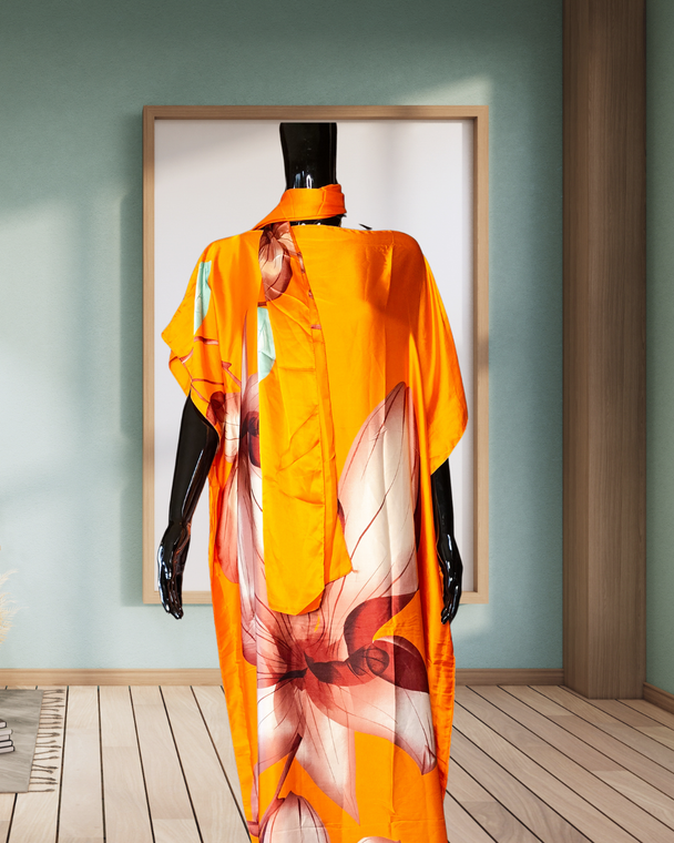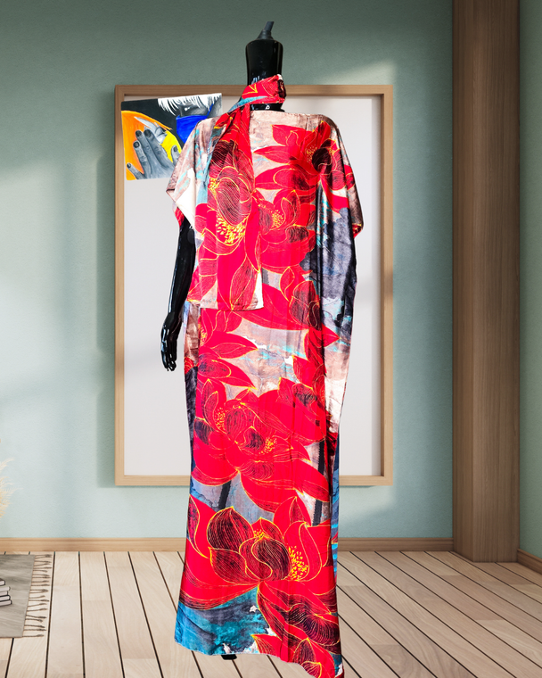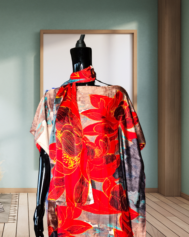 Deluxe loungewear consists of pieces that makes you feel like royalty. They come in two pieces which consist of a loungewear dress and a scarf which you can use on your hair as a head scarf, or as a belt or waist tie. The extra scarf can be styled as an additional top or dress.