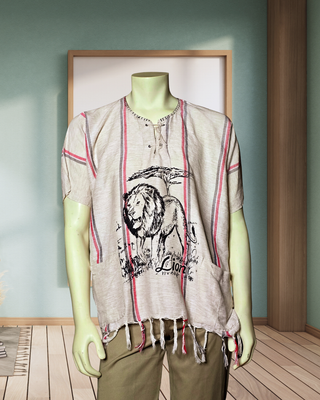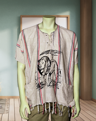 These are handwoven shirts and are safari inspired with wild lion print on it.