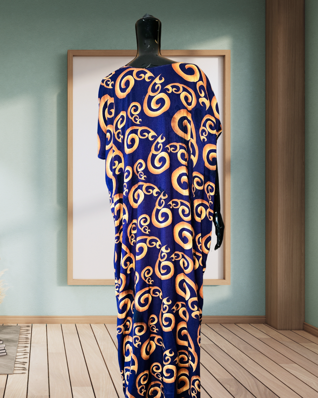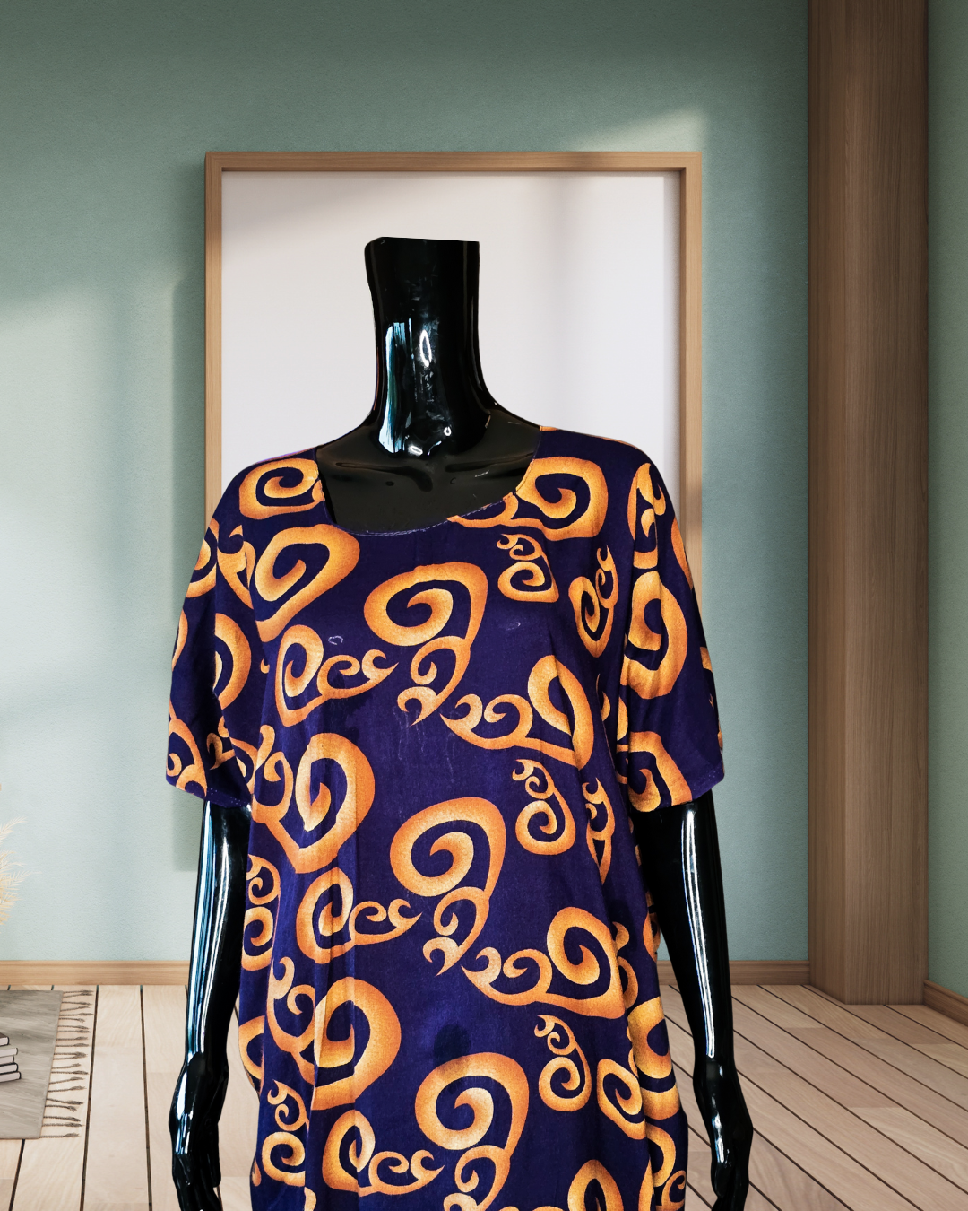 Rich Purple dress with golden flowers gives this loungewear a touch of elegance and warmth.