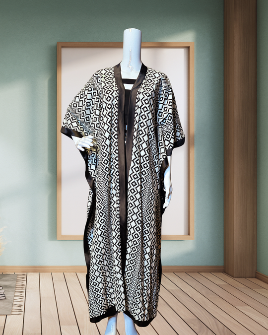 Long black and white cover up.Vibrant, elegant, stylish and versatile designs that blends global trends and fashion.Great for casual wear, formal wear and for festivals and its a fashion staple that everyone should have.This styles are...Regular price $110.00 -