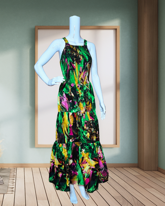 Beautiful long maxi dress with a flair type design.Beautiful for resort wear, family or friends dinner or dinner with your significant other.The patterns and prints are beautiful and brings out your personality and character.Best for tall...Regular price $170.00 -