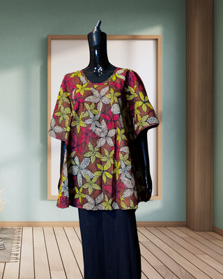 Beautiful short sleeves blouse with round neck.
