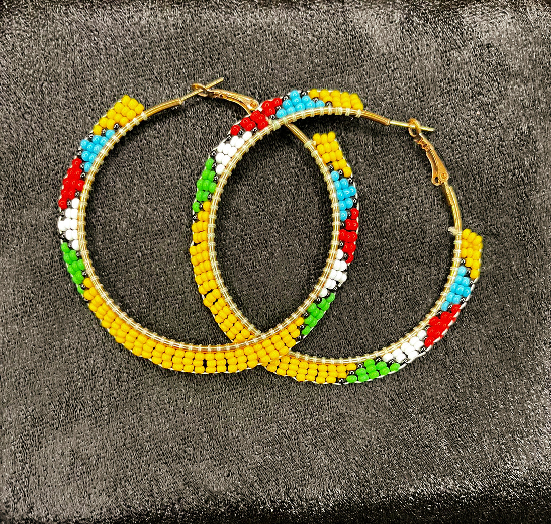 Beautiful stylish hoop earrings with even more stylish beadwork with different colors.